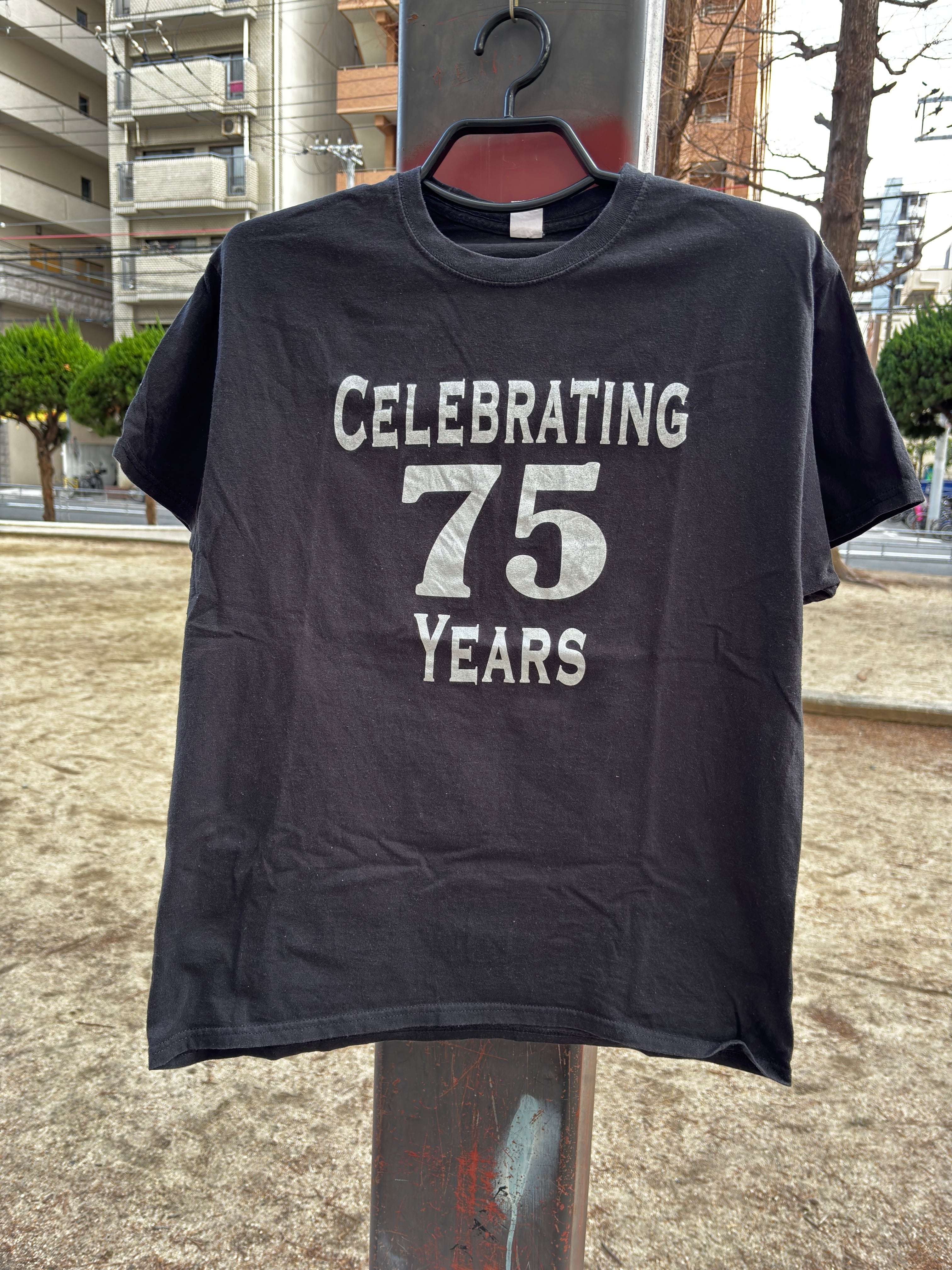 75歳を記念したデザインしたT-Shirts、珍しいデザインです。ラフな雰囲気が映えるかも知れない